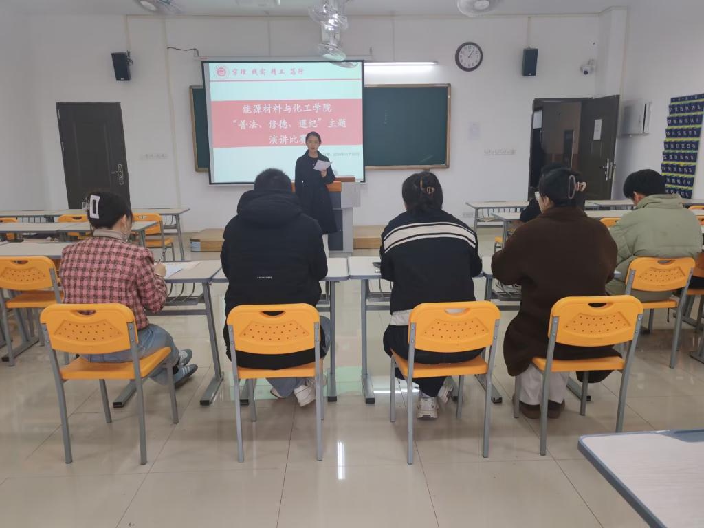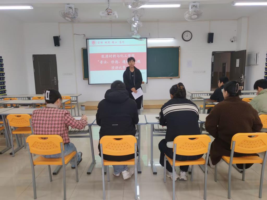 为贯彻落实立德树人根本任务,坚持“依法治校,以德治校”,积极响应学校有关2024年“普法、修德、遵纪,创建文明校园”专项活动的号召,提高学生法治素质,养成遵纪守法的好习惯,使社会主义核心价值观和法律条文、校规校纪、校园文明在每一名学生中入脑入心,促进良好行为养成,使学生的法律意识、德育观念、遵纪观念提升到一个新的水平,达到共建法治校园、文明校园、美丽校园的目的,材化学院特举办“普法演讲比赛”活动。