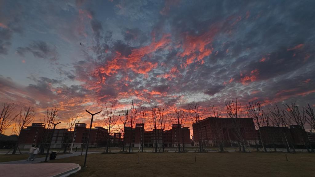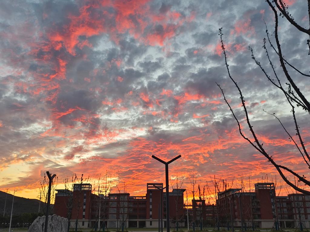 冬日的火烧云,似天边的繁花盛开,热烈而壮美。那一抹抹绯红、绛紫,如诗如画,让人陶醉其中,忘却了冬日的寒冷。(2024级化学工程与工艺(对口)1班 胡晓伟)
