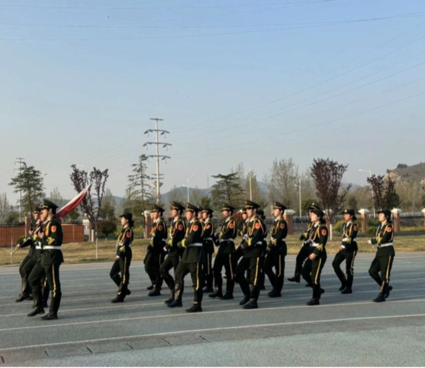 晨曦初照,与会师生整齐列队于操场之上。激昂雄壮的《义勇军进行曲》骤然奏响,英姿飒爽的国旗护卫队迈着铿锵有力的正步,护送五星红旗稳步前行。在全场师生的庄严注目下,鲜艳的五星红旗冉冉升起,猎猎飘扬于蓝天之下,那一刻,爱国的豪情在每个人心中澎湃翻涌。